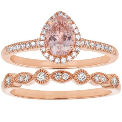 Pear Cut Halo Morganite & Diamond Engagement Ring 14K Rose ... from images.allurez.com Women rose gold rings set morganite anniversary proposal clear jewelry birthday party engagement wedding band. The white metal setting creates a strong contrast with the. A beautiful, enduring design, the pear cut morganite tearoom ring would make a unique choice of engagement ring or opulent gift. Each morganite ring can be customized with either rose gold or white gold. Morganite is named a crystal of divine love. Like all s collection pieces bought on samsclub.com, this ring is presented in a sleek, black s collection. Free shipping on orders of $35+ and save 5% every day with your target redcard. This mellow ring is set in 14k rose gold to enhance its delicate colors.